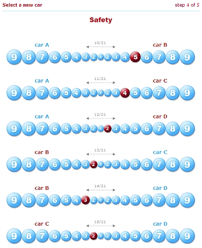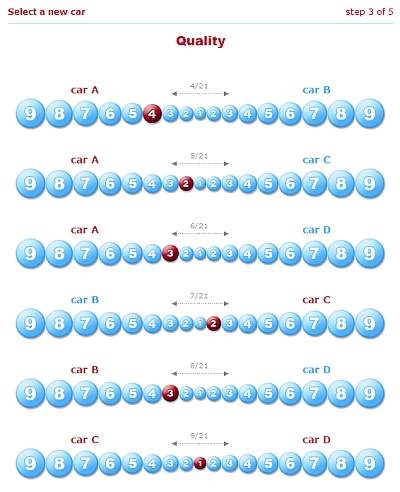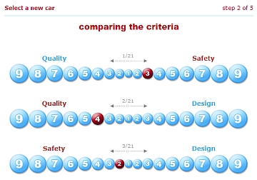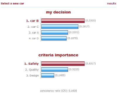 In this example we found that Safety is more important then Quality because we prefer more safety cars then quality. Of course, it does not mean that we do not want to have quality car, but just we give more importance to safety characteristics then quality.