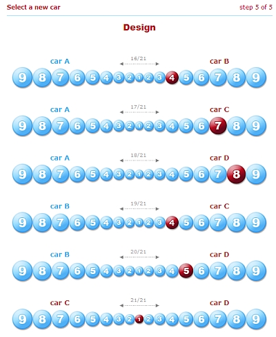 We have now four cars and we will go through each criterion and compare one with another according to each criterion. Extent of our preferences we will express with intensity from the Saaty s scale. The result should give us the optimal choice according to our preferences.