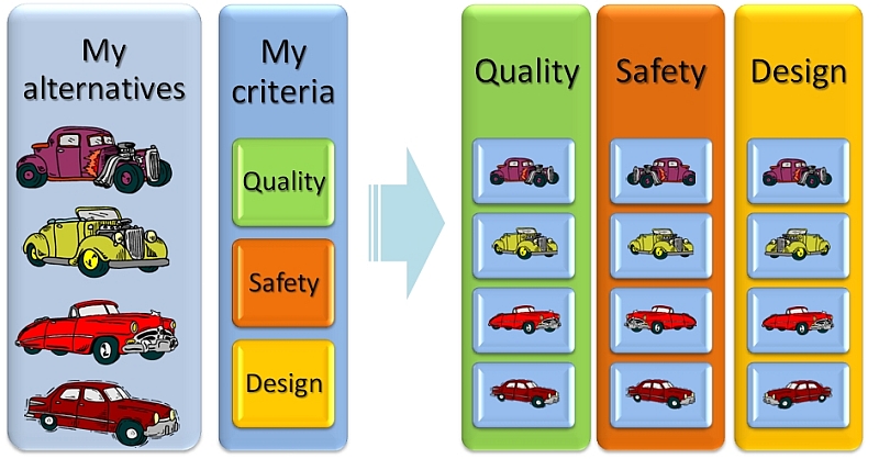 For example let us choose the best car that fits to our criteria. It is important to stress out that all decision will be made by our preferences and impression from information, experience and knowledge that we have.