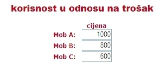 Zanimljivo je da je Mob C sada mnogo bliži optimalnom izboru za mene, no i ovo mi je potvrda da i s usporedbom prema cijenama koštanja Mob A je moj izbor, moja odluka za kupnju."