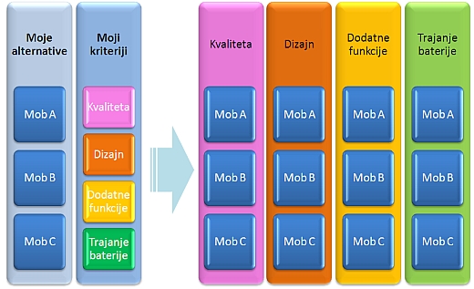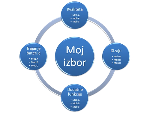 U suštini imam situaciju gdje od tri mobitela po četiri kriterija trebam izabrati najbolji za sebe.