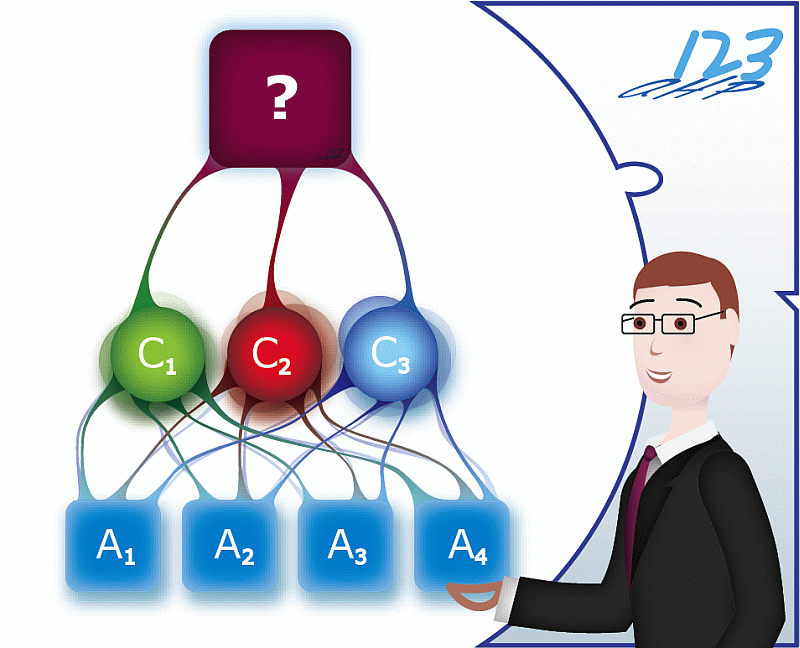 Ich brauche zu machen, Entscheidung. Unter mehrere Optionen (Alternativen) und Kriterien ich empfehle mehrere.