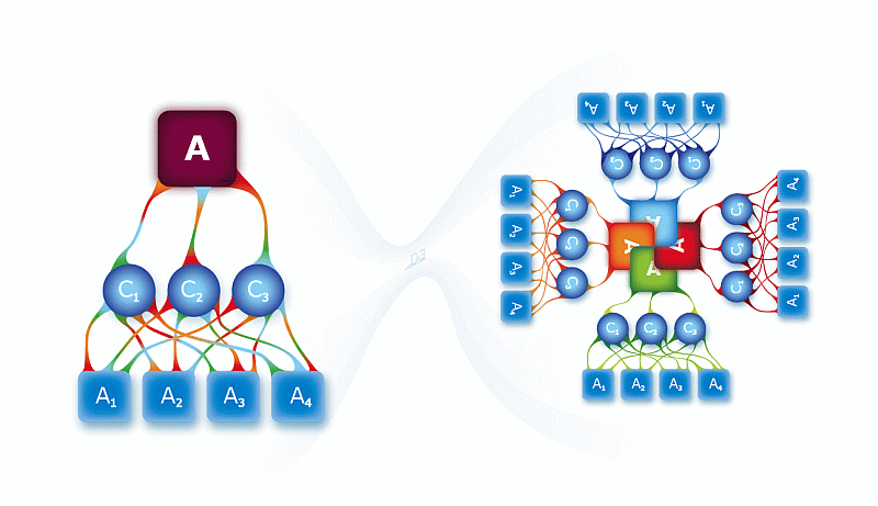 strukturiert eine Entscheidung als hierarchische Modell. |